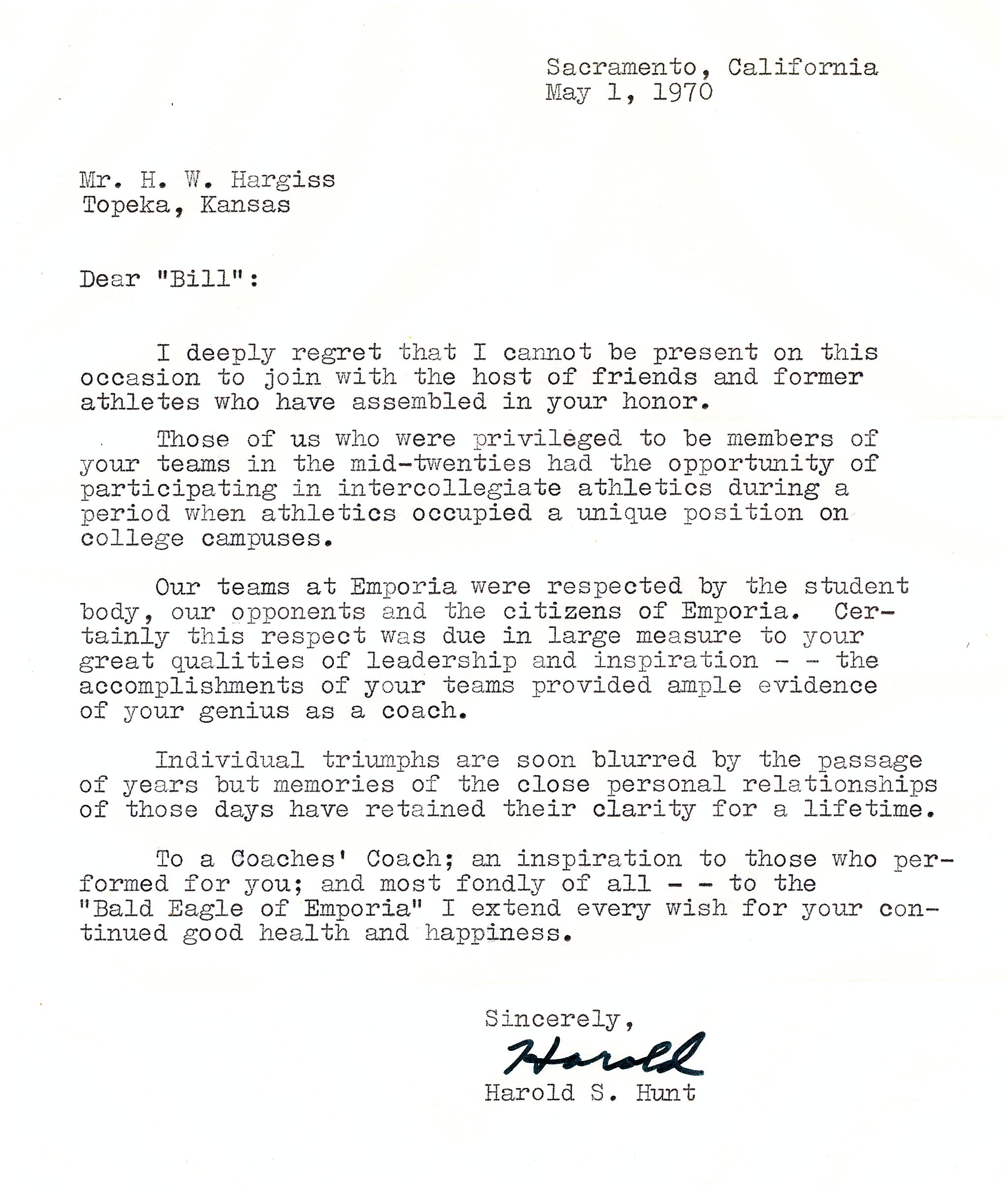 Harold Hunt Letter